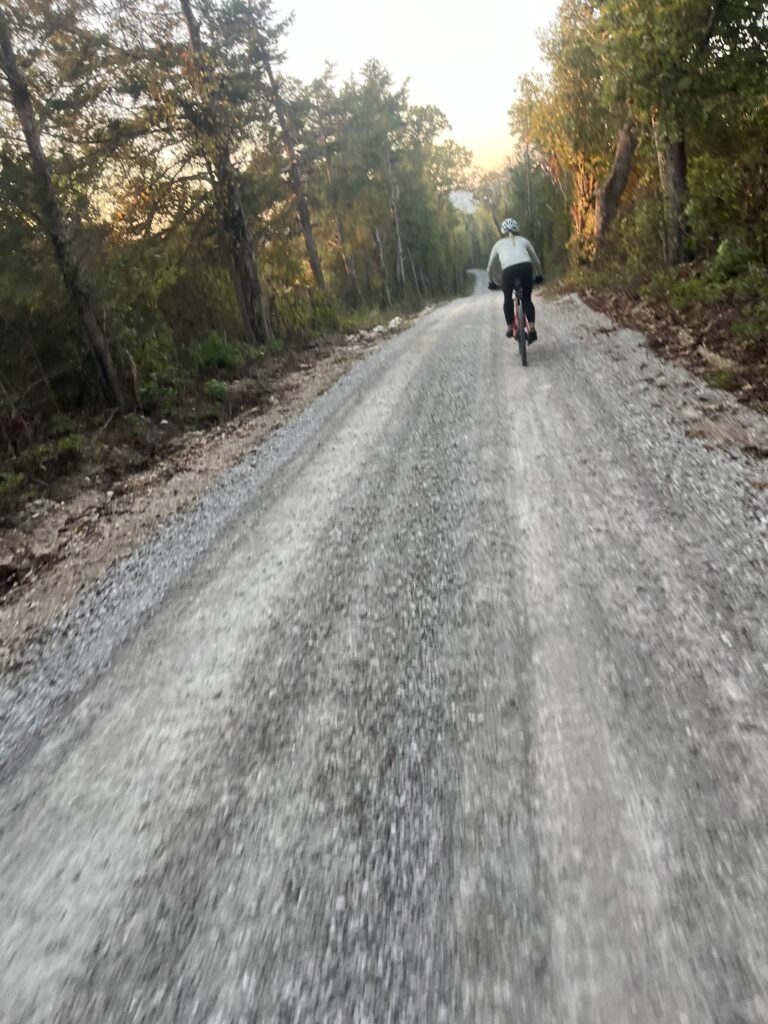 Downhill at sunrise with your pedal buddy is a perfect start to the day. The leaves have started to turn color and the air was perfectly cool. The conversation rolled like the Ozark hills we climbed and descended, from work to kids to fitness to faith to current events to laughter, frustrations and family. Fourteen miles flew by in an instant and we finished happier than we started. I’m grateful for the patterns of life and friends like Katie who make the journey interesting, fun and productive.