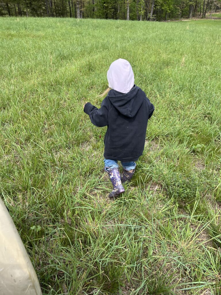 She spotted the Crimson clover as we rode through the back field and just had to hop off to pick some to bring home.